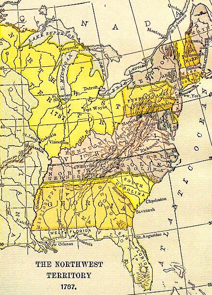 Map of the Northwest Territory, 1787. Note that the original border between Illinois and Wisconsin is mistakenly located at its final location. (Online)