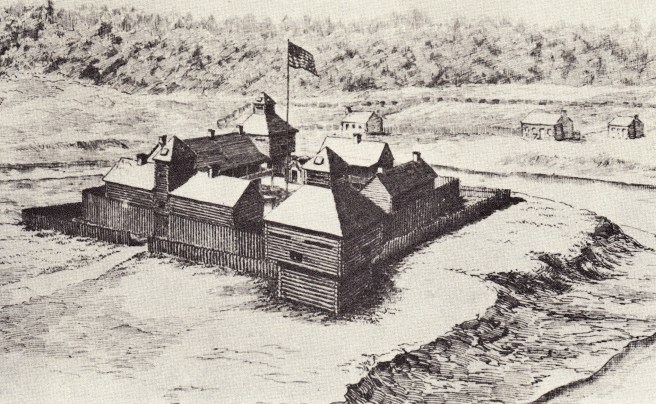 Whistler found the river, roughly 90’ wide and 20’ deep to be stagnant, due to a sandbar that had been formed by the lake’s current at the mouth of the river, that itself had correspondingly moved over time (from its present location) to almost one half of a miles to the south before it ultimately flowed into the lake (some five blocks farther to the south, at the present location of Washington Street). Finding the area to be populated by only the buildings that du Sable had erected on the north bank, Whistler still chose to build the fort (appropriately named Fort Dearborn) on the south bank of the river at the bend in the mouth of the river that created a natural peninsula, utilizing the natural defense provided by the river to cover three of the fort’s four walls.
