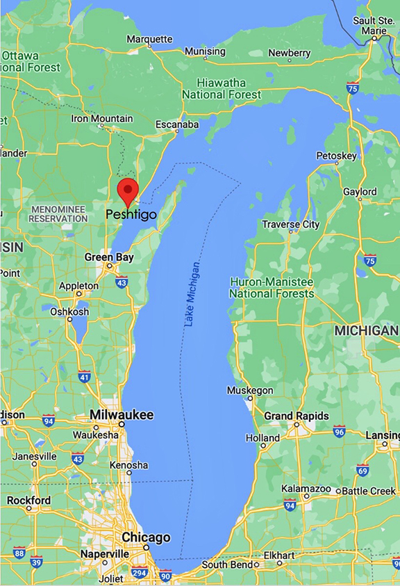 Before Ogden started his return trip to New York, however, he made a quick inspection trip up Lake Michigan and into Green Bay, finally stopping at Fort Howard, WI, located at the mouth of the Fox River into Green Bay (the town of Green Bay would not be incorporated until 1854). He had heard talk of the timber resources in upper Wisconsin and wanted to see for himself if the area had any real timber investment potential. With his lumber experience he would have pleasantly smiled as the steamboat plied the wooded shores of Green Bay. This may have been the final event that convinced Ogden to move to Chicago and begin a new phase of his life, for over time, he would own most of the forests in the area that centered around the small lumber company town that he would build and name Peshtigo, Wisconsin. On his return trip to Chicago, he made the acquaintance of two men who would become his oldest friends and business associates, Walter Newberry, Bronson’s land agent in Chicago, and lawyer J. Young Scammon. Scammon was a twenty-three year-old lawyer from Maine who was moving to Chicago to make his fortune. Within a week of his arrival, Scammon was hired as the deputy of the circuit court clerk.