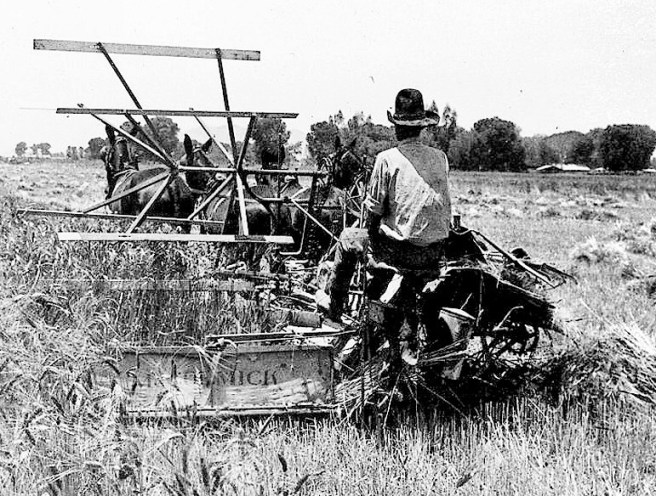 Wheat’s great strength in the NorthWest was its ability to be stored over a long period of time without rotting until the spring thaw opened up the Great Lakes shipping season, permitting the grain to finally be transported to markets in the East and Europe. The Achilles’ heel of wheat, on the other hand, was that no matter how large a plot of land the region’s farmers planted with seed, once the grain had started to ripen, there was a period of roughly ten days within which they could harvest by hand as much as humanly possible before the wheat began to rot in the field. The promise of the seemingly ideal flat, unbounded prairie to provide bread for the world would be unrealized until enough farm laborers had moved west to help the new landowners harvest all of the wheat that the fertile acreage could produce. Farmers could grow as much wheat as they could plant, but those ten days in early summer would determine not only what percentage of the crop actually got harvested, but also how much profit the farmer netted after paying the premium wages demanded by the few available hired hands who had migrated to the west at this time. As early as 1842, Chicago understood that this limitation of nature’s bounty had to be overcome if the city was ever to realize the latent profit in its surrounding farmland: